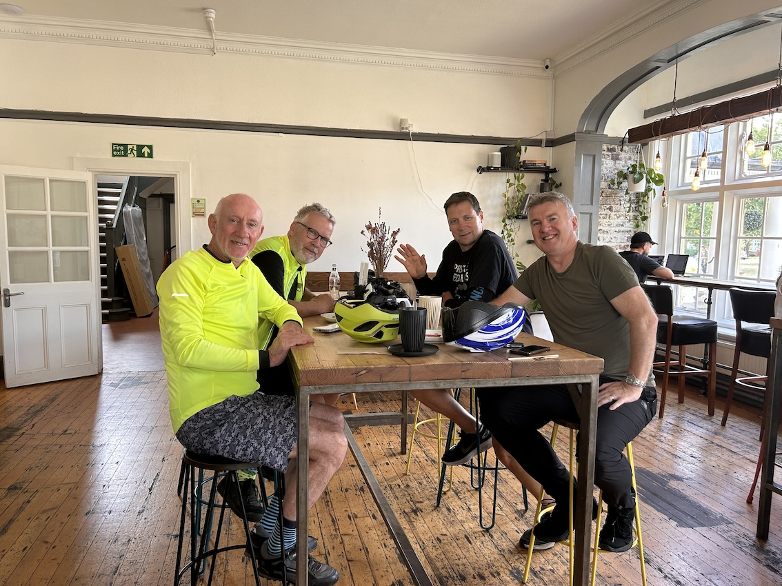 Ivan and Andy shared a cake (not as romantic as it sounds!) and Mikey had his croissant toasted - rather controversial and a Wobbler first! Jim made do with a pre-ride banana and a remarkably small chocolate bar post ride. What you may notice about our blogs is that we sometimes describe what we consume as much as we describe our cycling! Our millions of readers insist on it. Well, it might not be millions....
